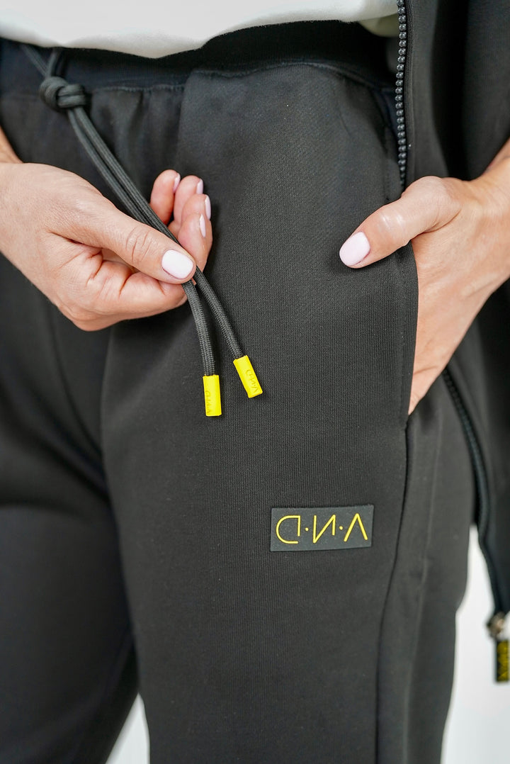 Dámska tepláky s vyšším pásom zo signifikantnej kolekcie IDENTITY so stredne vysokou gramážou predstavujú unikátny nadčasový štýl a pohodlie. Pletenina IDENTITY je na dotyk veľmi príjemná, vyznačuje sa najvyššou kvalitou spracovania a hustým pletením. Materiálové zloženie látky pozostáva z vysokého podielu prémiovej bavlny a z menšieho pomeru polyesteru, vďaka ktorému si tepláky držia svoj tvar a aj po mnohonásobnom vypraní nestrácajú farbu.